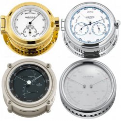 Besonders außergewöhnliche Varianten der WEMPE Thermo-/Hygrometer sind die Kombinationen mit Barometer und Quarzuhr. Dafür wurden die Instrumente in edle Holzplatten eingelassen und präsentieren sich von einer ganz exklusiven Seite. In der Admiral II Serie gibt es zudem ein Thermo-/Hygrometer mit blauer Einfassung des weißen Ziffernblattes. Schwarze Ziffernblätter stehen in anderen Serien zur Verfügung.